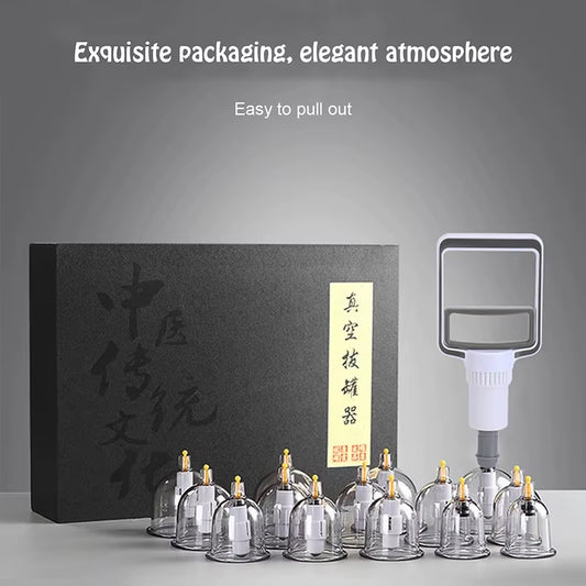 • 12 Cans Vacuum Cupping Set Chinese Medicine Physiotherapy Fat Burner Slimming Anti-Cellulite Therapy Health Care Body Massager